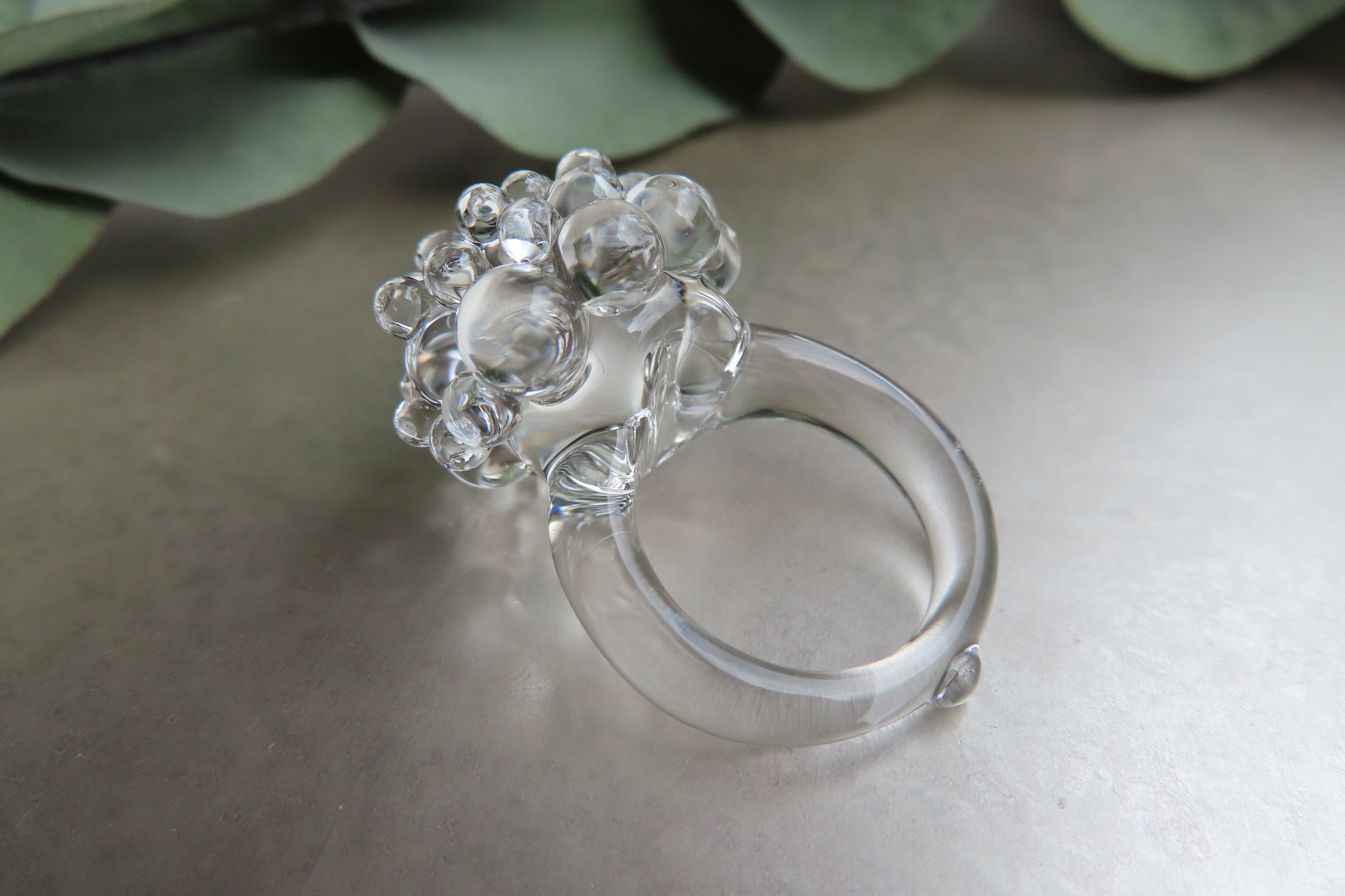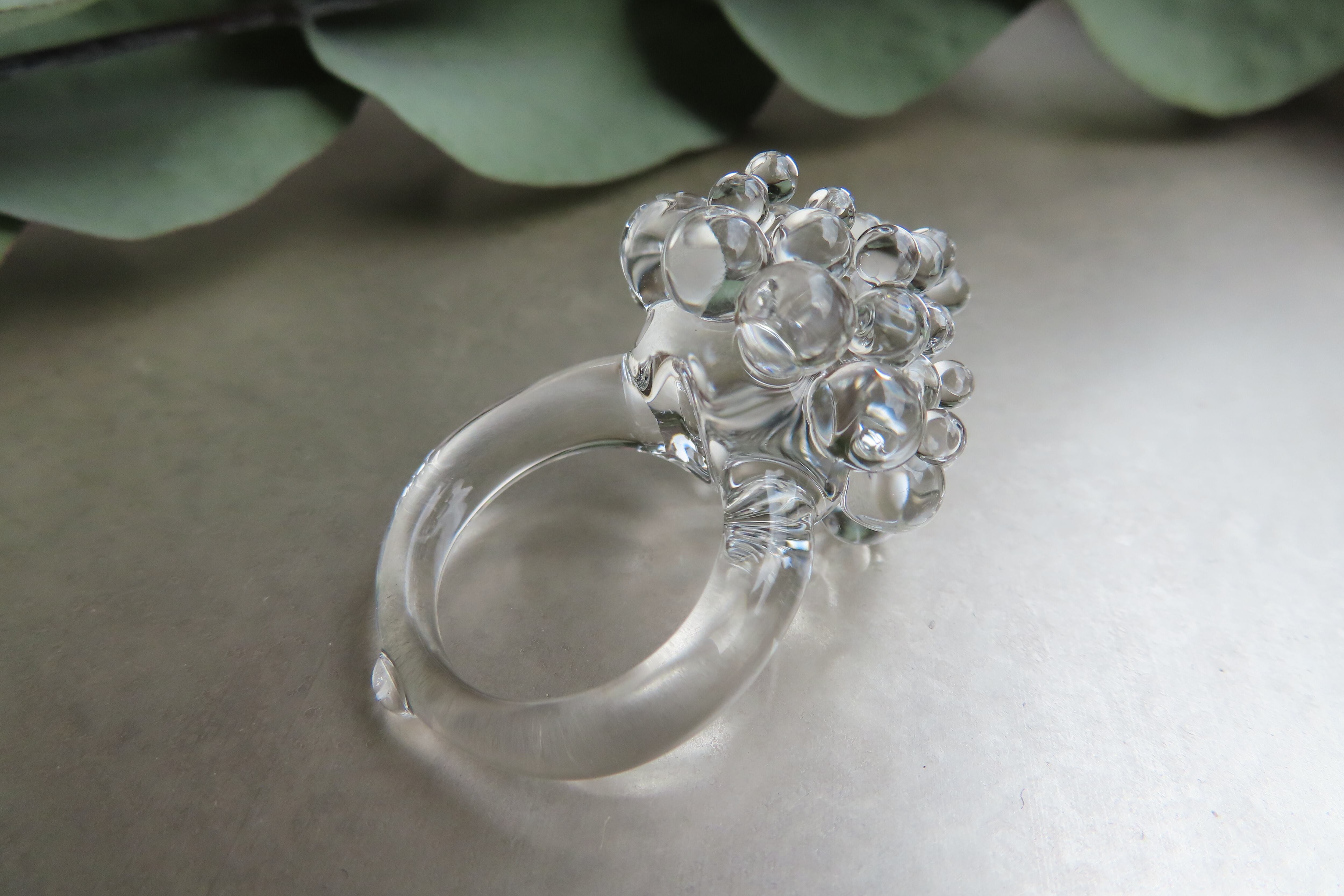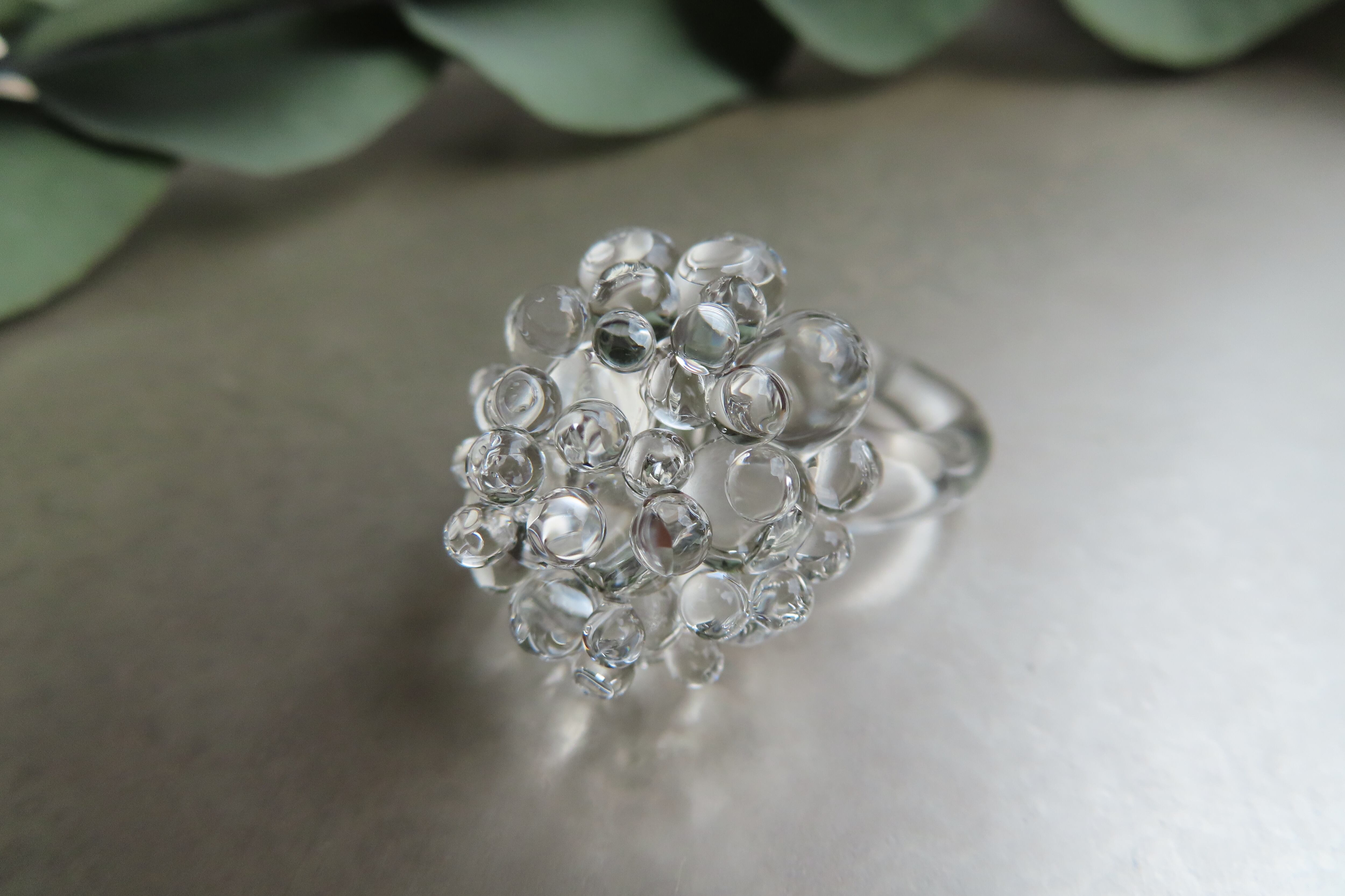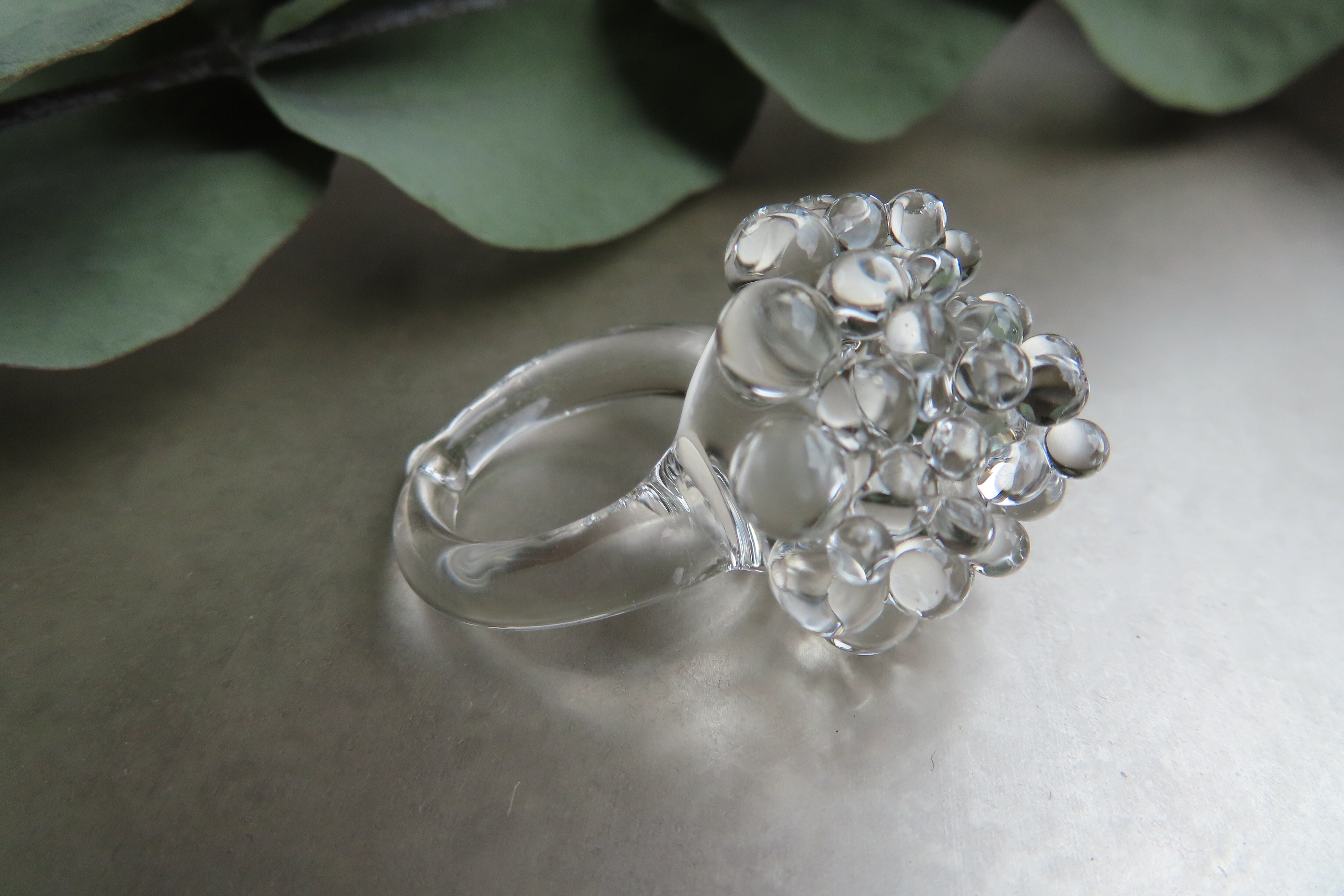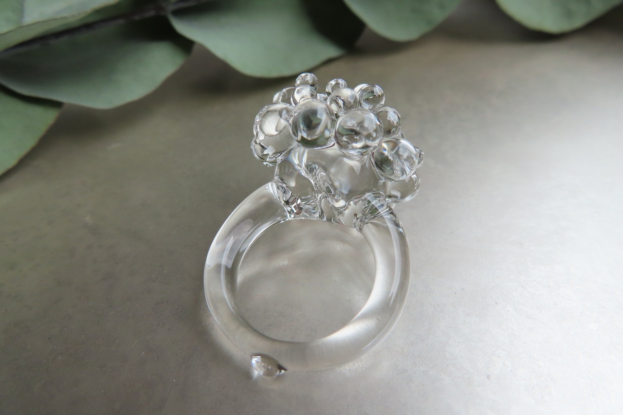 透明な粒が無数にひろがる、瑞々しいガラスリングです