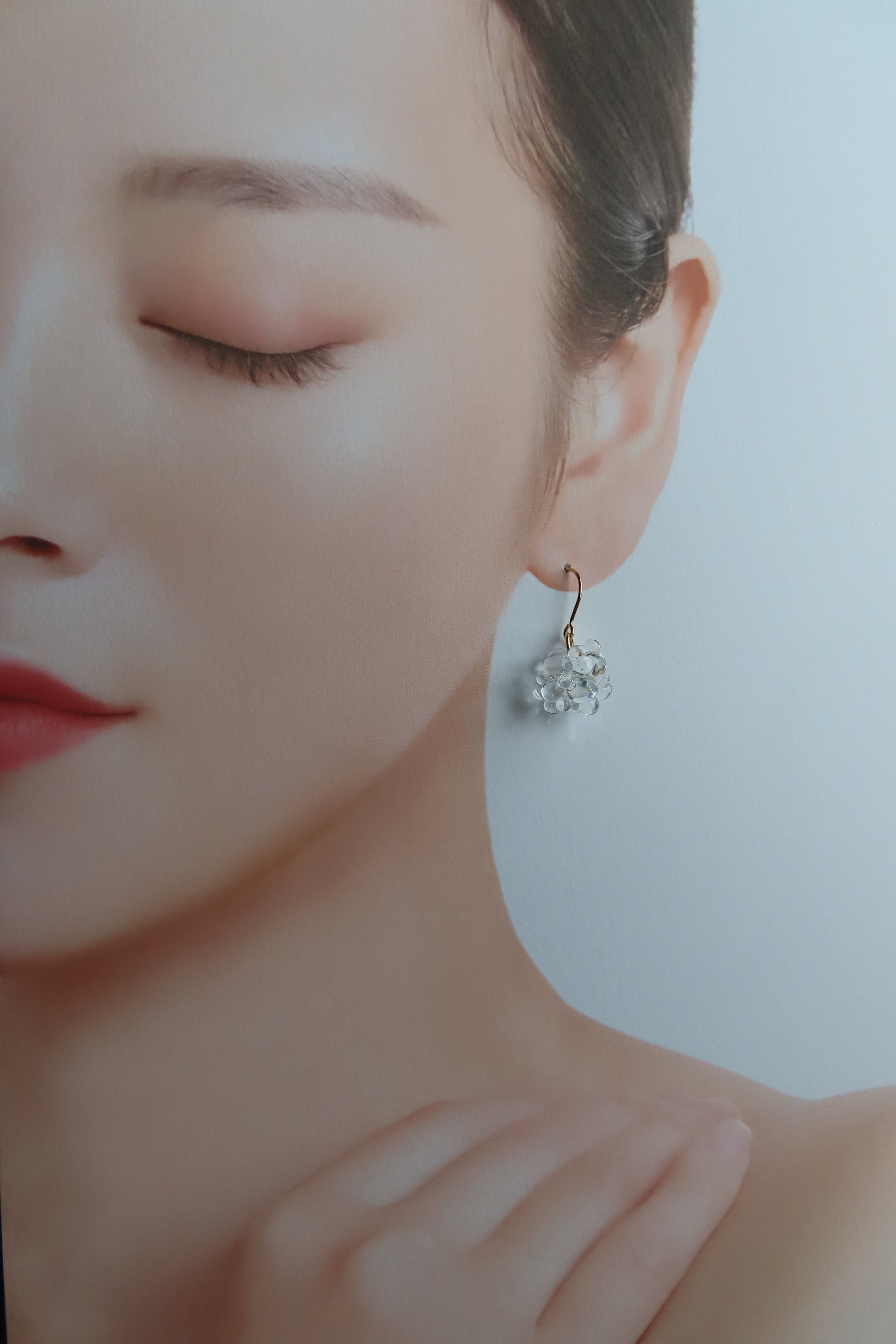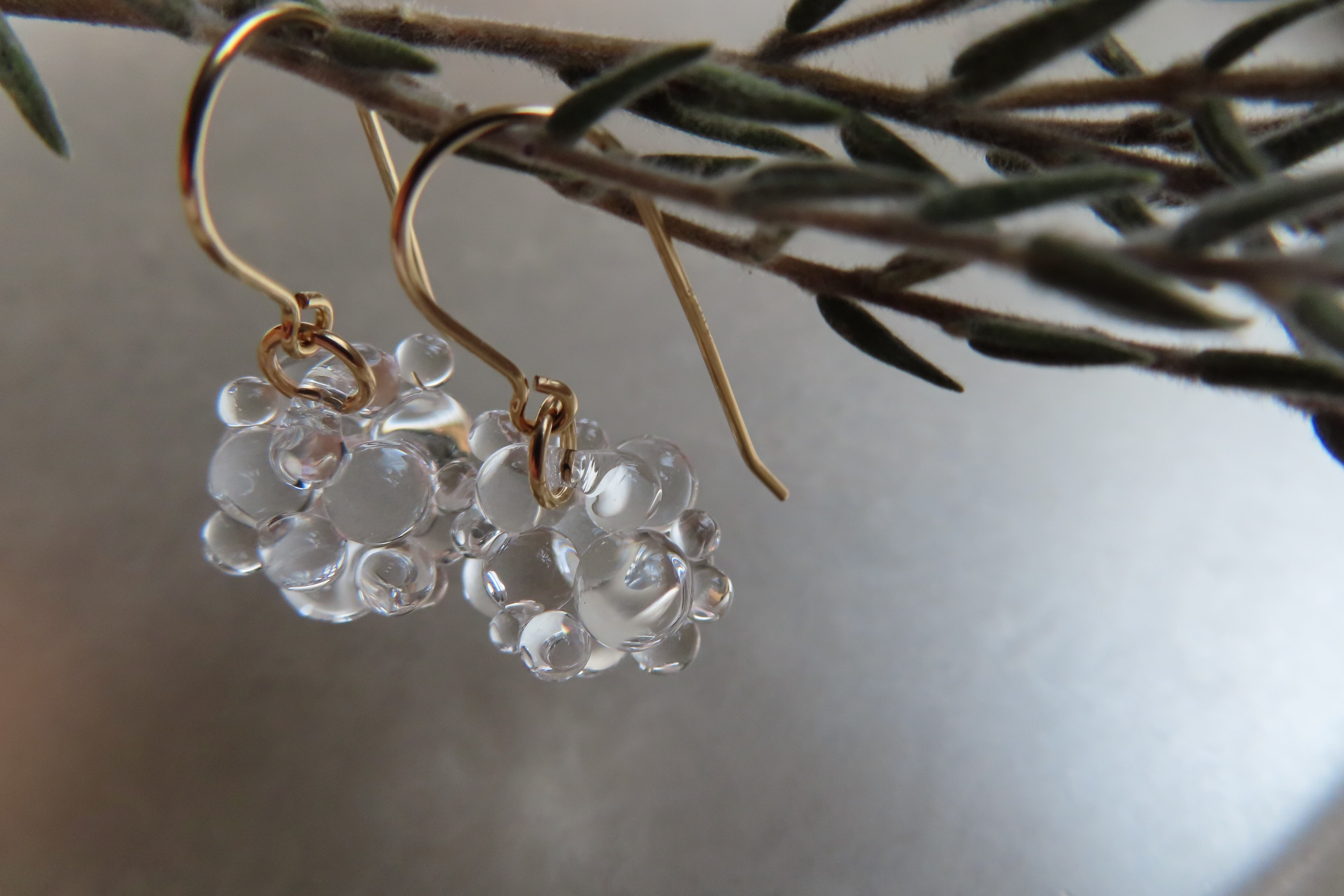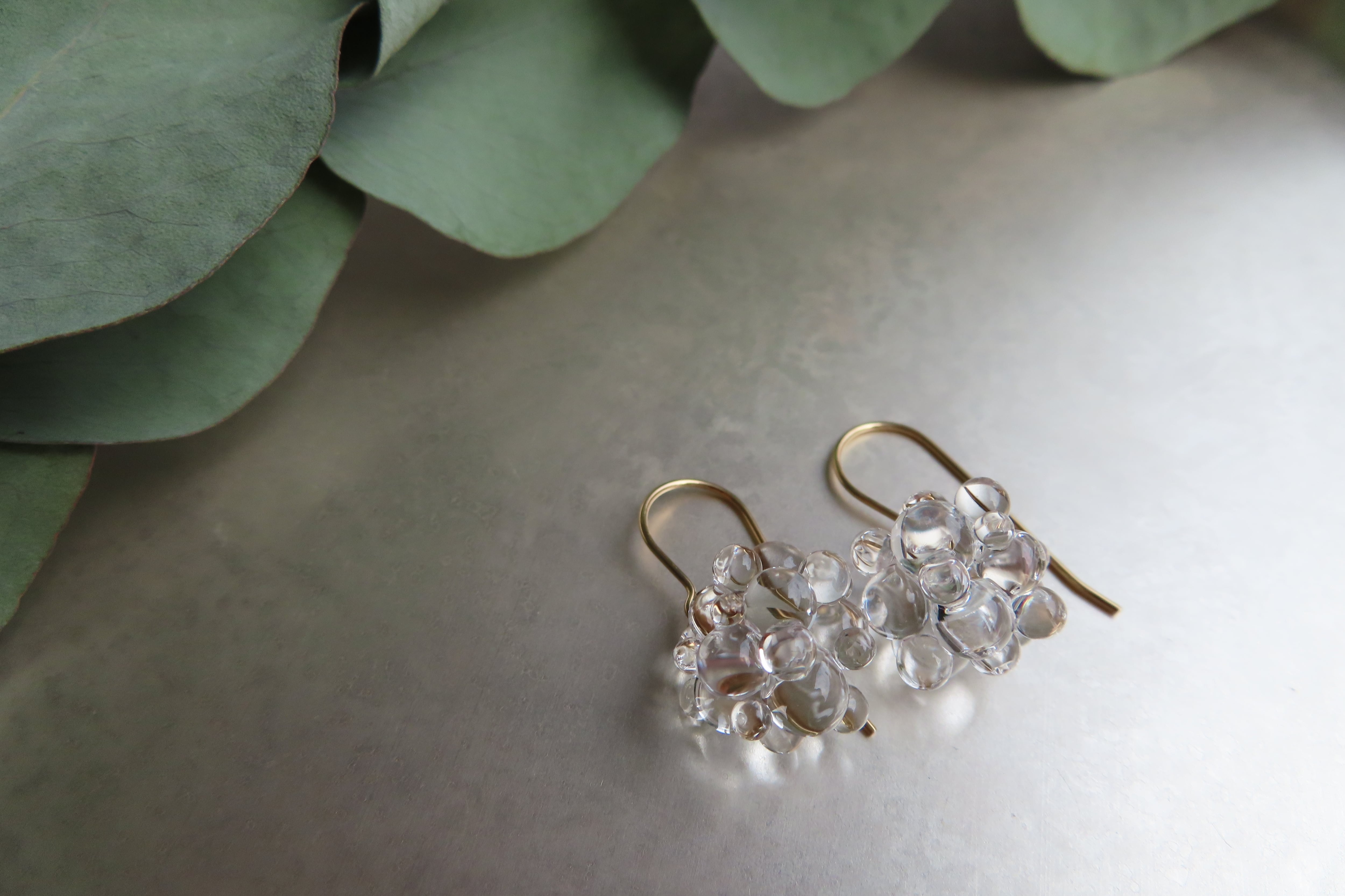 透明な粒が無数にひろがる、瑞々しいピアスです