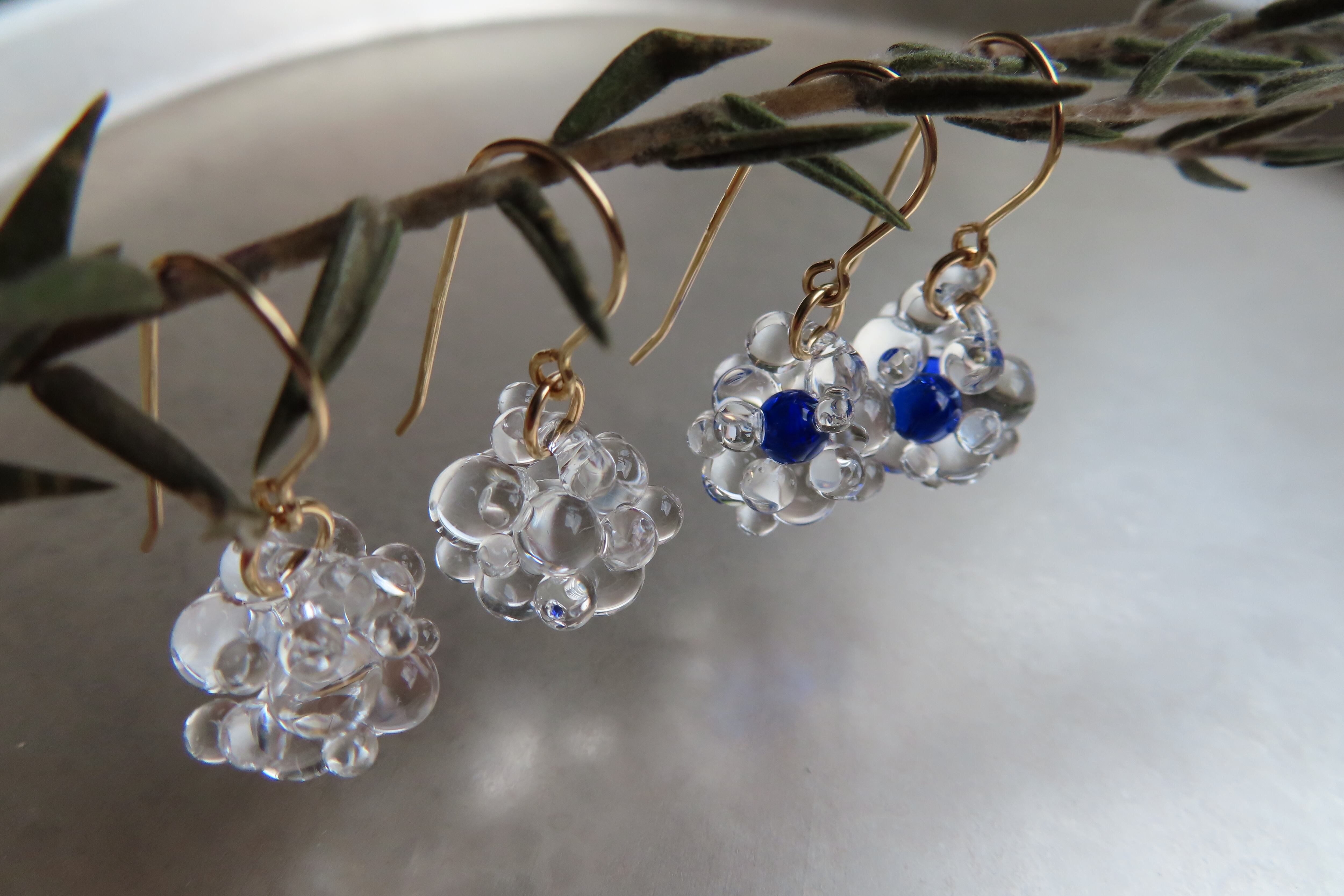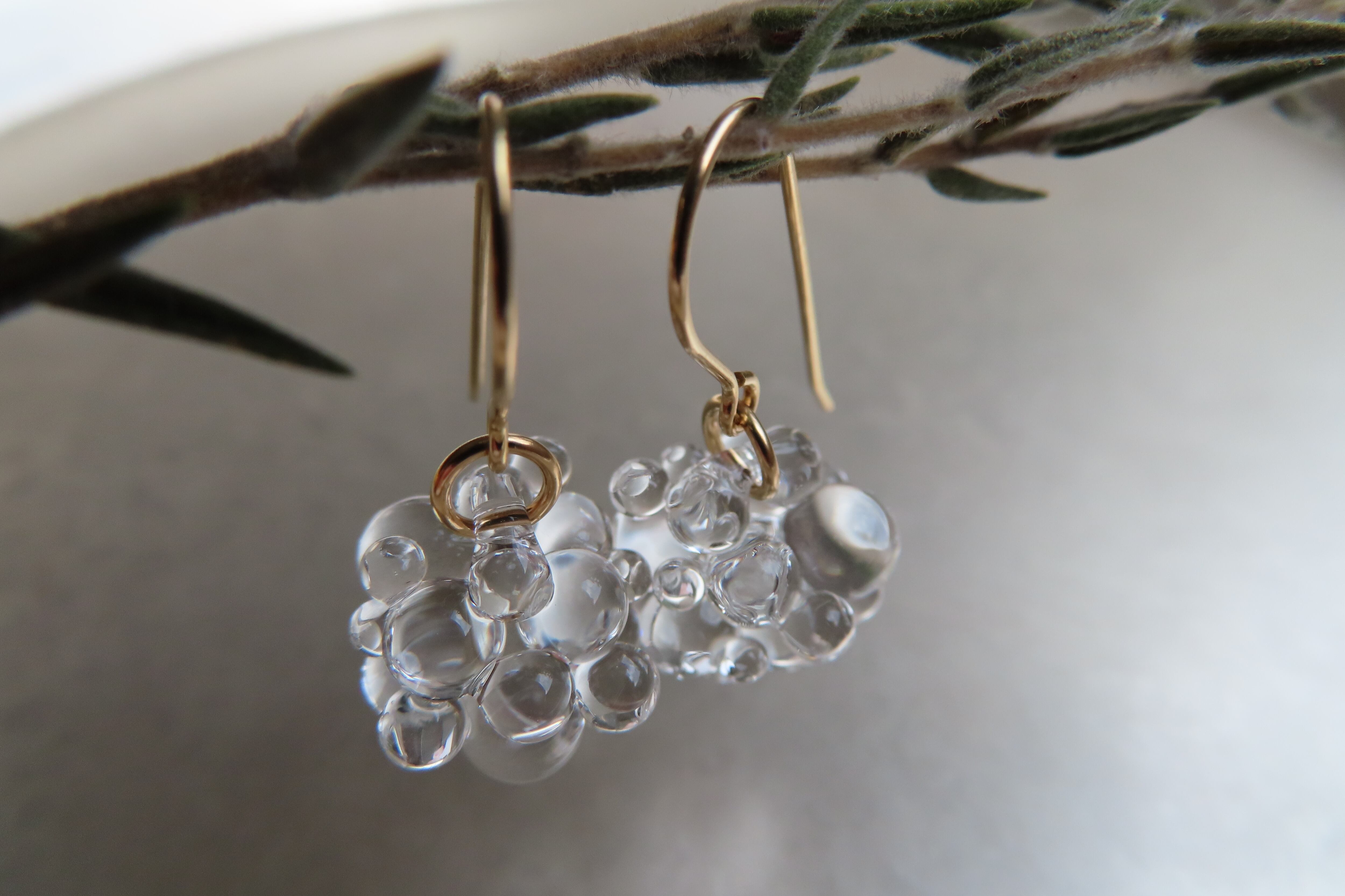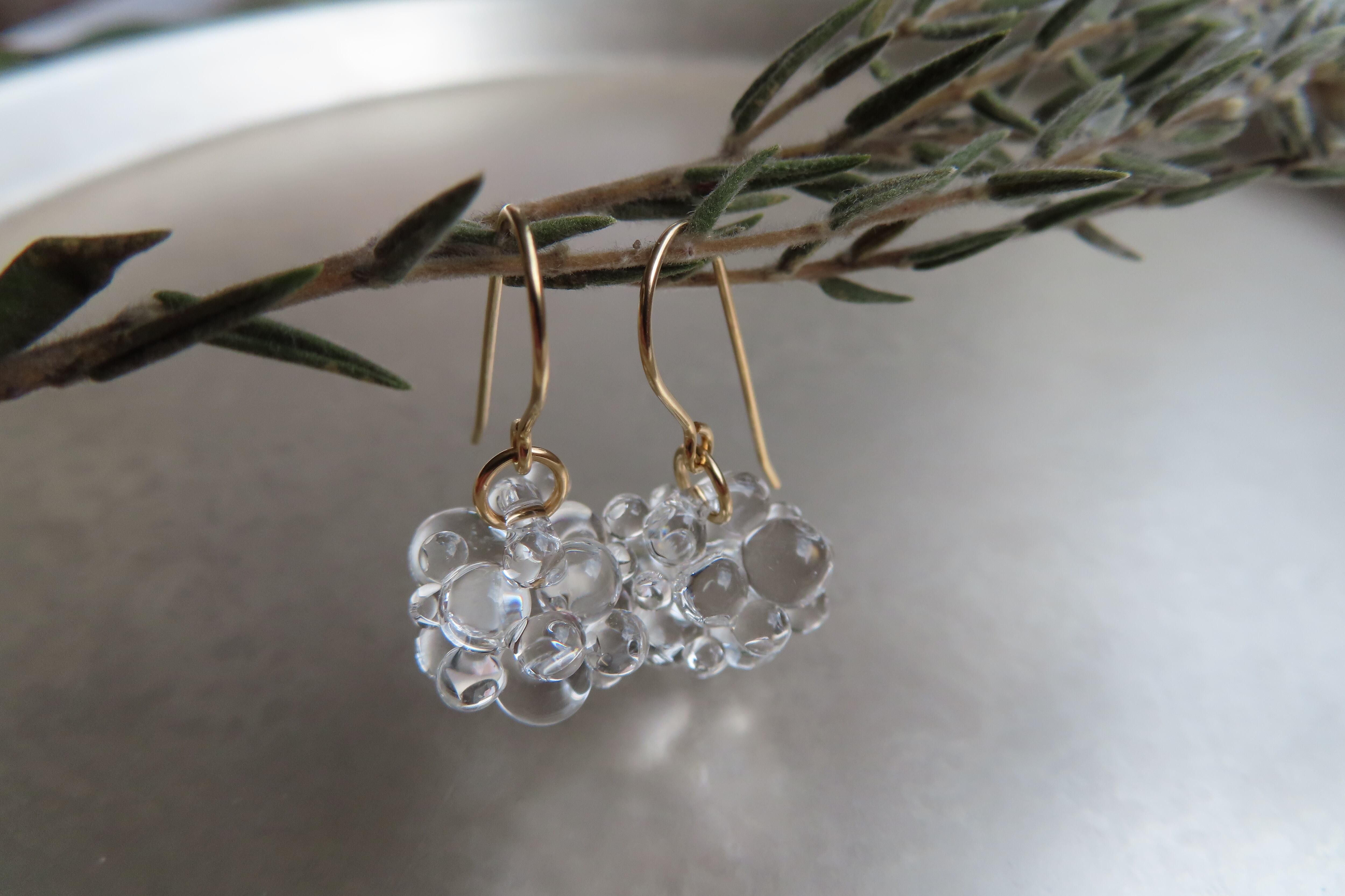 透明な粒が無数にひろがる、瑞々しいピアスです