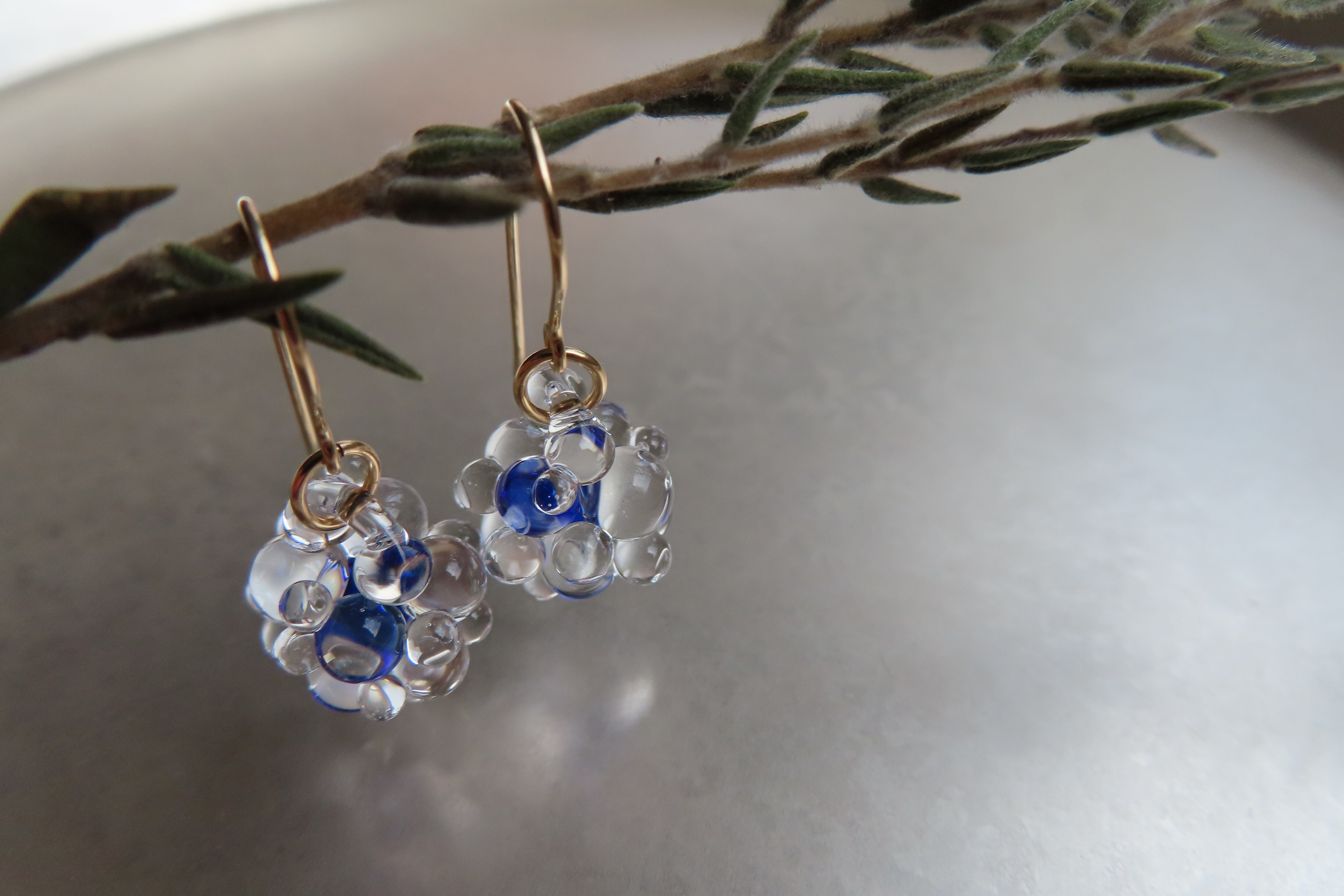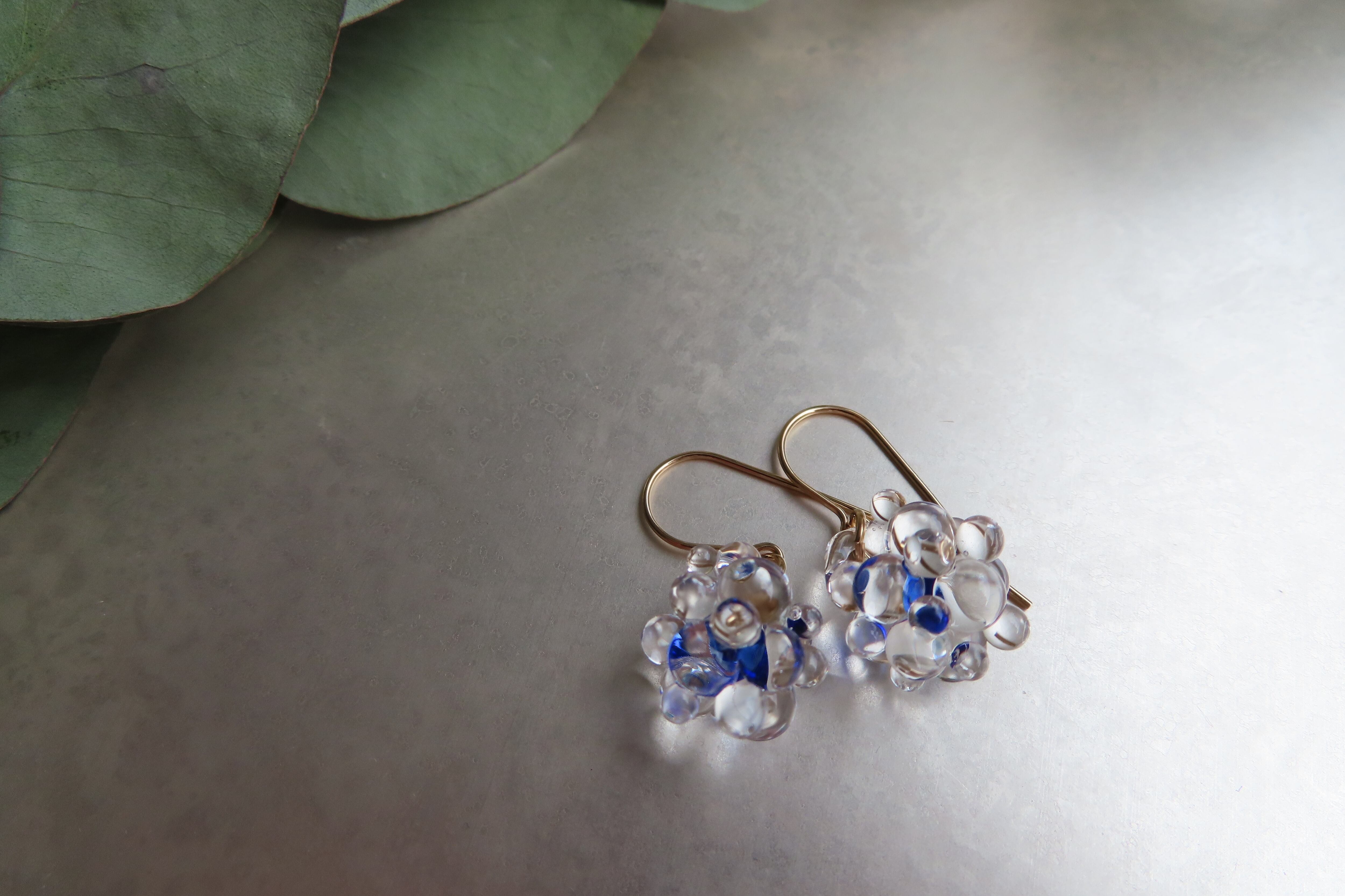 透明な粒が無数にひろがる、瑞々しいピアスです