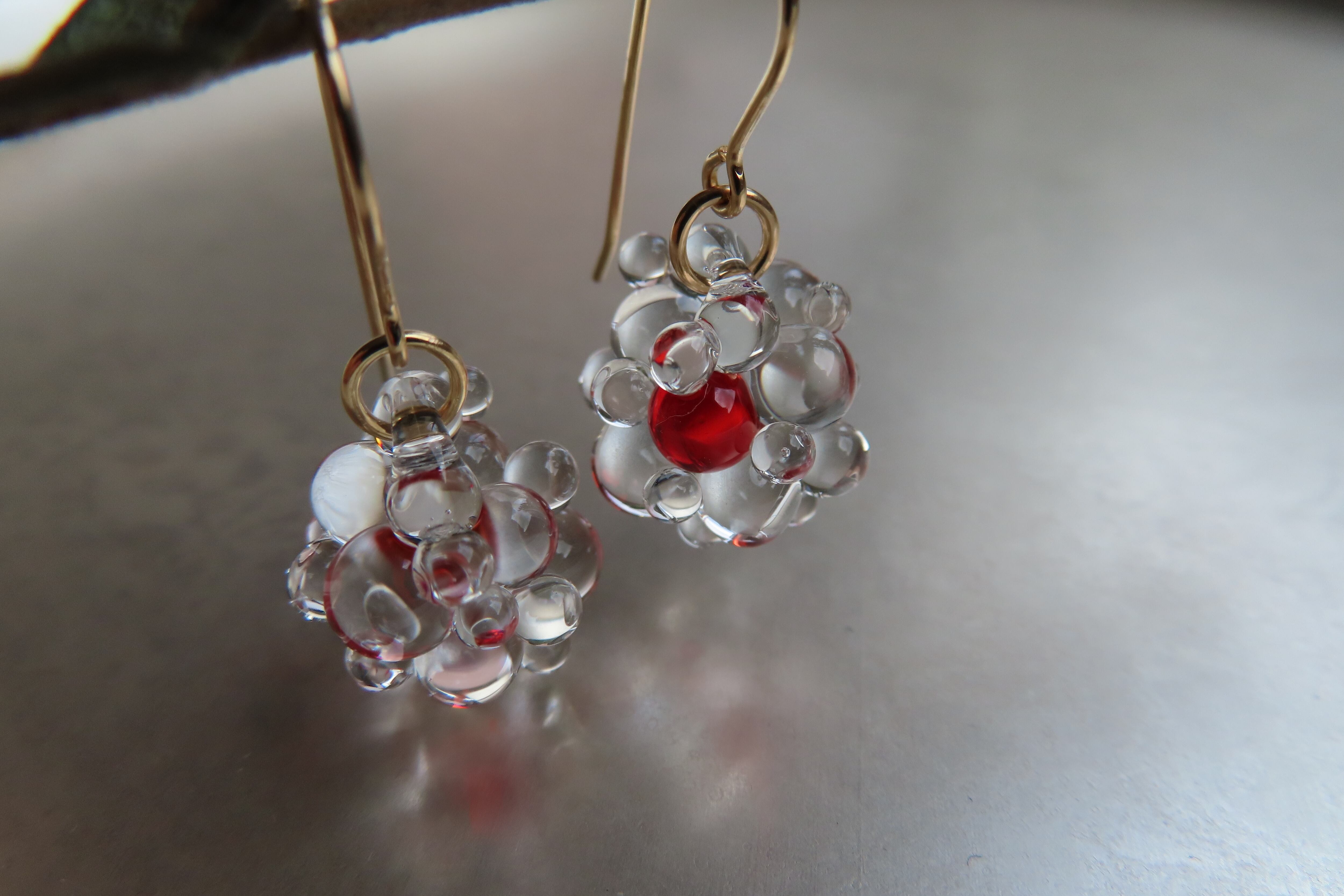 透明な粒が無数にひろがる、瑞々しいピアスです